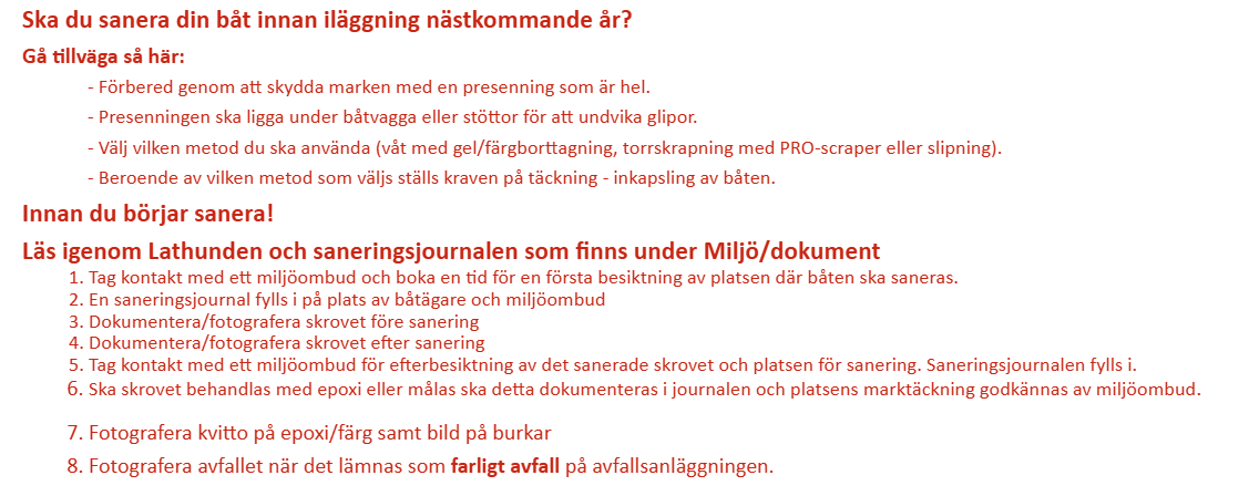 Inför iläggningen våren 2025 ska de allra flesta båtarna vara sanerade vilket betyder att